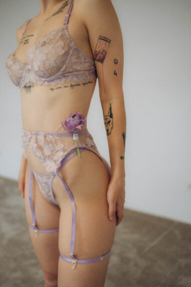 Komplet bielizny damskiej „Feodosia” -to harmonia komfortu i elegancji. Bez wkładek i push-up, biustonosz z przepinanymi ramiączkami zapewnia naturalne podparcie i wygodę. Majtki w stylu tanga zamykają to połączenie tworząc uczucie lekkości i delikatności. Z użyciem 95% poliamidu i 5% elastanu, komplet gwarantuje miękkość, elastyczność i przyjemny kontakt ze skórą.